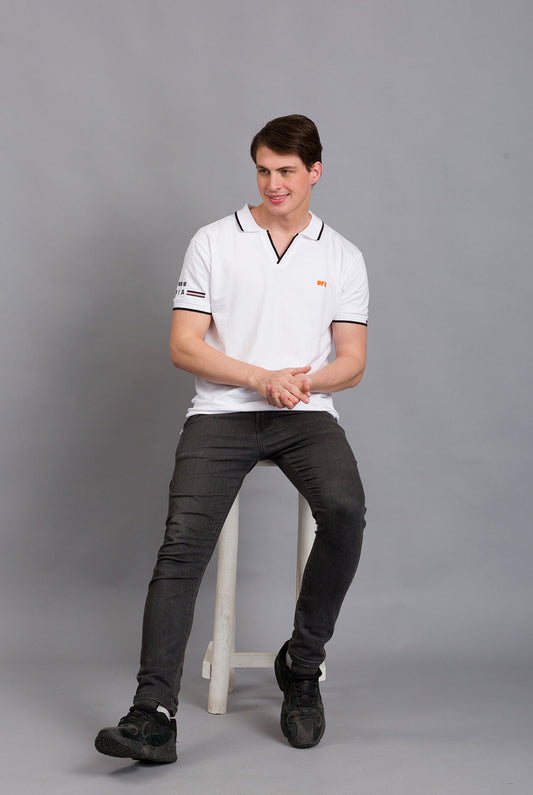 Discover our V-Neck Polo T-shirt, the epitome of simple, classy, and minimal design. Crafted with 100% pique fabric, it exudes timeless elegance while offering ultimate comfort and breathability. Available in two chic colors, Jet Black and Pearl White, this cool and chic piece is a wardrobe must-have for those seeking both style and comfort.